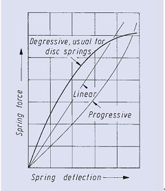 與其它類型彈簧相比,碟型彈簧具有如下特性: